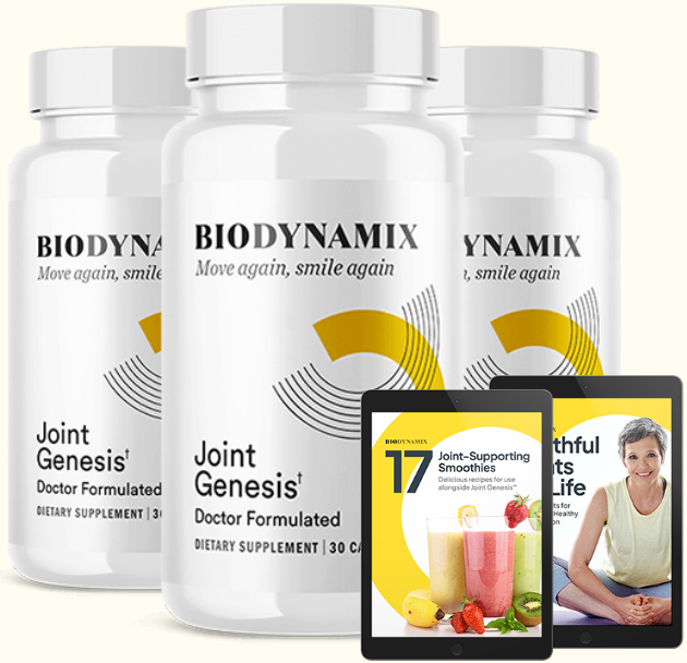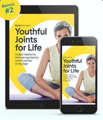 When you order a 3- or 6-month supply of Joint Genesis™, you’ll also receive the digital guide “Youthful Joints for Life” as a complimentary bonus.