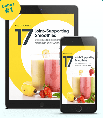 When you order a 3- or 6-month supply of Joint Genesis™, you’ll also receive a complimentary eBook featuring 17 smoothie recipes designed to support a balanced and active lifestyle.